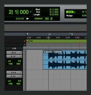 曲のサイズ編集や、後のコーラス貼付けなどの際はテンポにグリッドしているほうがやりやすいですので、ProTools・Studio One・Garageband・Logic・Cubase・など、ご使用のソフト上でまずテンポを設定したのち、データのアタマ(多くの場合、お渡しするデータのアタマは曲スタートの1拍前に設定していることが多いです)をグリッド上に合わせるなどしてご使用ください。